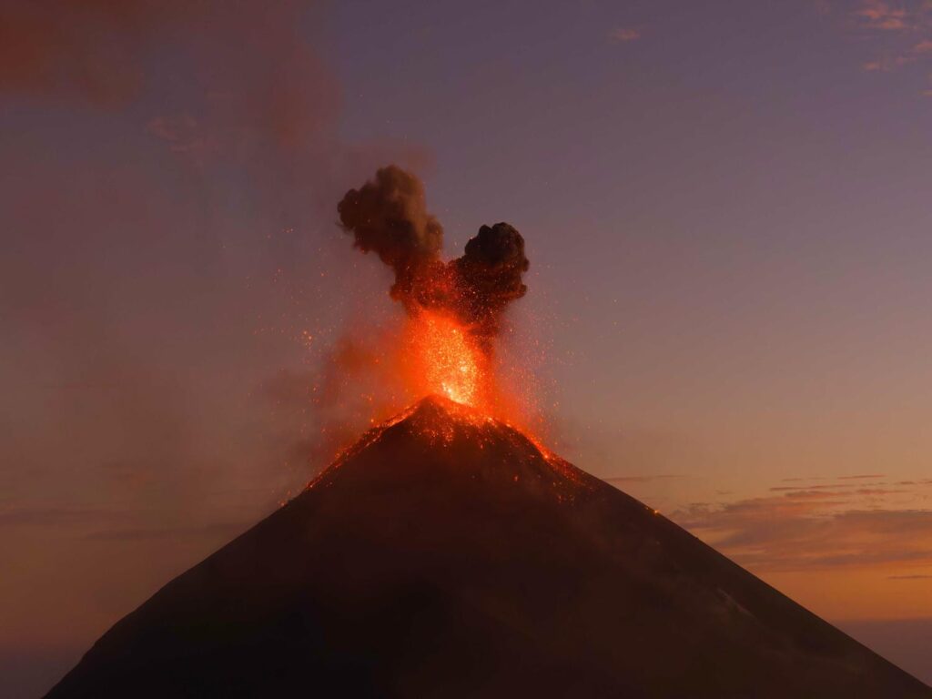 Brooke and Kevin had done this exact same guided trip twice before, with both trips ending in disappointment- fog the first time, and altitude sickness the second, with freezing temperatures both times! This time, the weather was absolutely perfect- not a cloud in the sky. With the sun blazing down, we were soon all in shorts and t-shirts, enjoying the spectacle of a lifetime. Every 10 to 20 minutes, Fuego would erupt with a giant cloud of ash rising thousands of feet. Some of the more violent eruptions would be complete with chunks of rock blown hundreds of feet into the air, which would then hit the flanks of the volcano, sending clouds of ash flying, before tumbling thousands of feet down the slopes, leaving a puff of ash with each bounce. We watched this, uninterrupted, from around 1pm when we arrived, until nearly midnight. The real show began when the sun went down, when we began to see lava erupt along with the ash. We realized that all the chucks of rock we’d seen had actually been molten hot, and with the light of day, we hadn’t seen the glow of lava.