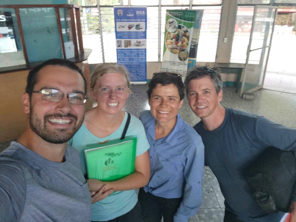Right after we’d completed the final step and were headed out the door, who did we meet coming into the building but David and Regula- the Swiss cyclists we’d met on the La Paz-Mazatlan ferry in Mexico! They’d cycled all the way through Mexico, Guatemala, El Salvador, and Honduras, and we must have passed them that very morning when they’d stopped off the road to make breakfast. We spent some time catching up with them, telling each other stories of our adventures. It was such a crazy coincidence to run into them – I hope we see them again further down!