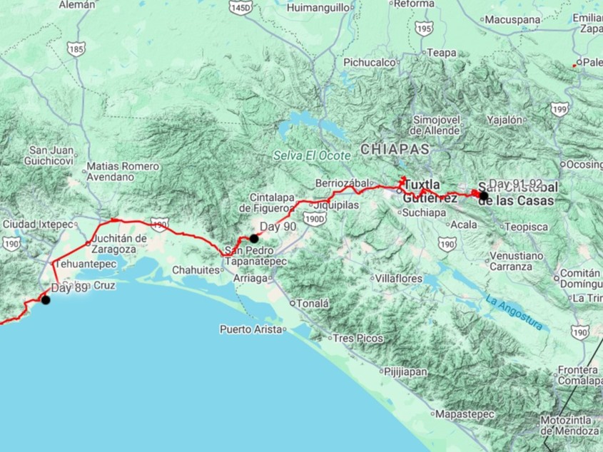 In the morning, we drove back town the beach and through Salina Cruz. Salina Cruz is a large port city, which is the southern terminus of the “Interoceanic Corridor of the Isthmus of Tehuantepec,” a recently completed railway project. The Isthmus between the Pacific and Atlantic oceans is only around 140 miles, and Mexico has invested a vast sum of money into building freight transportation infrastructure to rival the Panama Canal. The Isthmus has long been a potential freight transportation route- it was considered as a possible location for the Canal along with an isthmus in Nicaragua before the French settled on beginning construction in Panama. A railway across the Isthmus of Tehuantepec was completed in 1910 and was quite profitable, but with the U.S. finishing the construction of the Panama Canal in 1914 (the French attempt went bust in 1889) business plummeted, and the line fell out of use. In 2018, design work was started to rehabilitate the mostly-unused railway, and it opened in 2023. Freight train speeds increased from 12mph before modernization to 45mph, and the Mexican Government claims that they can transport goods from the Pacific to the Atlantic Ocean cheaper than the Panama Canal can. I remain skeptical as unloading a boat, loading a train, unloading a train, and loading a boat seems far less efficient than simply traversing the Canal, but canal fees have apparently become very expensive. More likely perhaps is that the watershed that supports the Canal continues to receive less rain, reducing the number of ships that can pass, as has happened in recent years. Then maybe the Isthmus of Tehuantepec will receive more business.